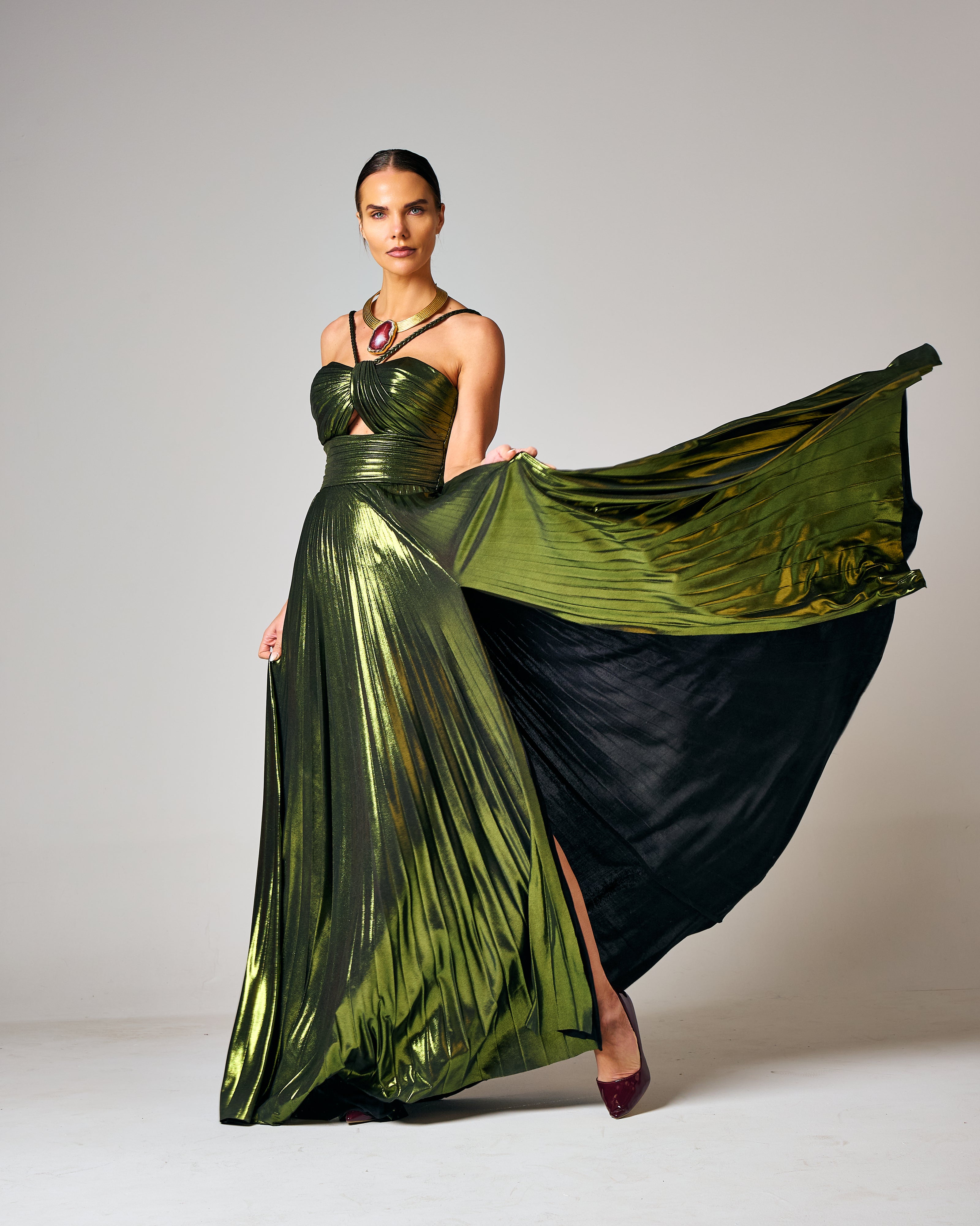 IMPERIAL OLIVE GLAM DRESS